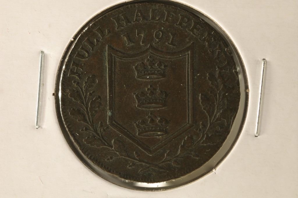 PROVINCIAL TOKENS PRIVATELY MINTED TOKEN COINAGE STRUCK AND USED DURING THE LATTER PART OF THE 19TH CENTURY IN ENGLAND. SIMILAR TO OUR CIVIL WAR AND HARD TIMES TOKENS. "HULL HALF PENNY"