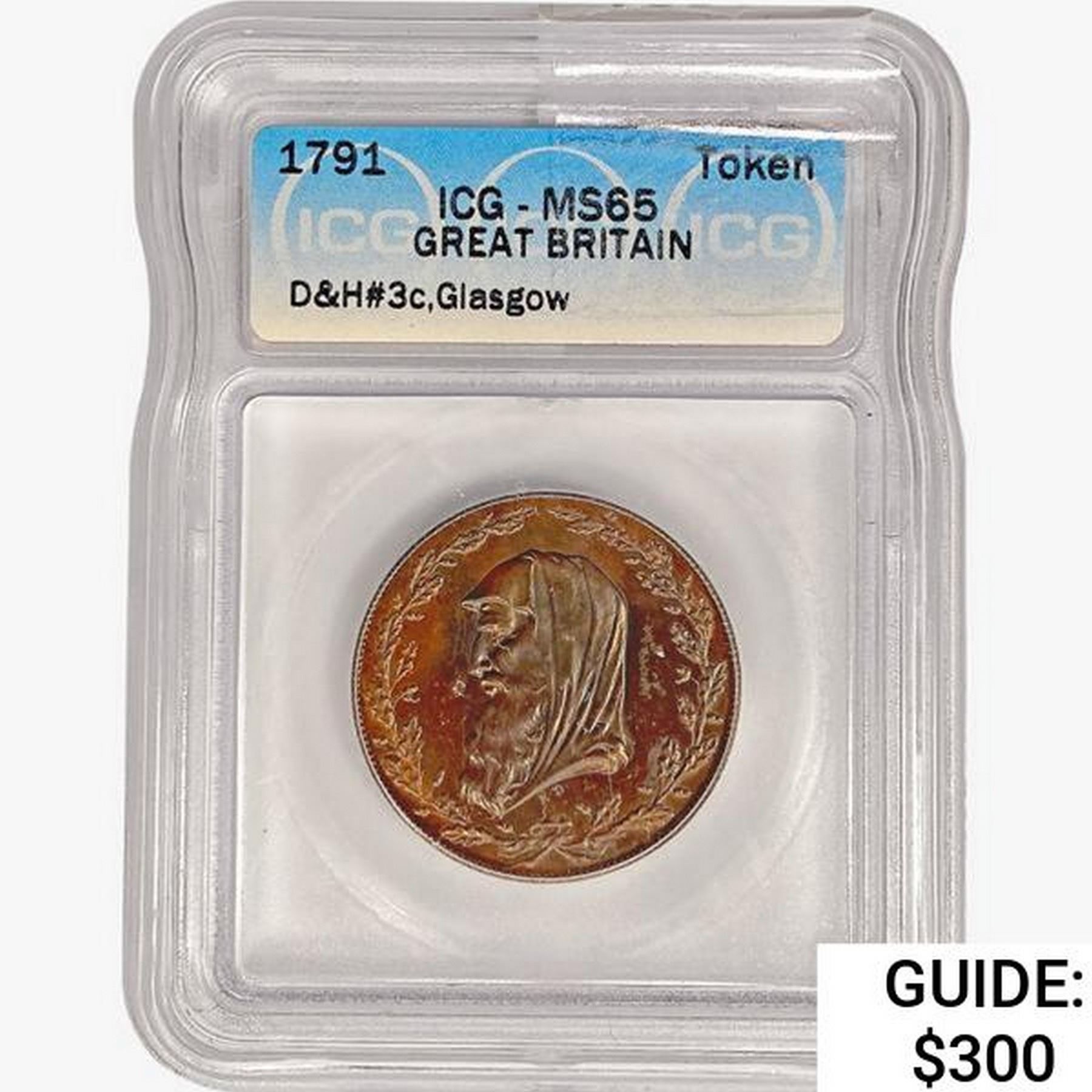 1791 Glasgow Token D&H#3c ICG MS65 G. Britain