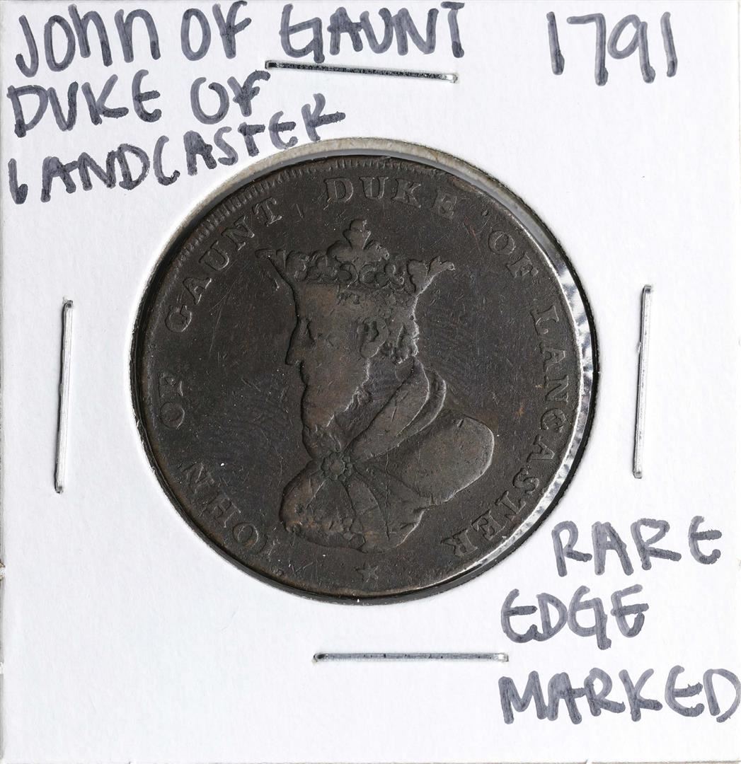 One 1791 John of Gaunt Duke of Landcaster Half Penny Coin.
