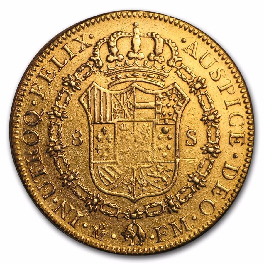 1791-Mo FM Mexico Gold 8 Escudos Carlos IV BU OVER 200 YEAR OLD GOLD RARE