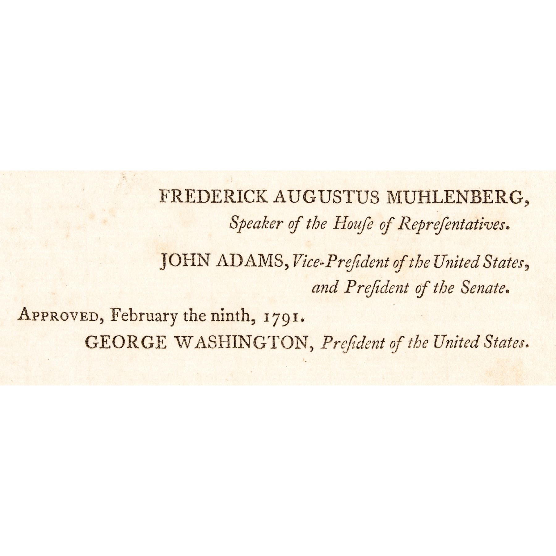 1791 President George Washington Printed Congressional ACT Approved in Print