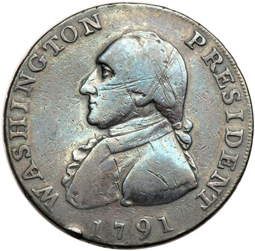 1791 Washington Large Eagle Cent Breen-1206 Lettered Edge VG10. Five points sharper but there are some fine scratches on the portrait, none notable. Otherwise the planchet is smooth and the devices are bold. Lightly cleaned and retoned glossy chocolate and steel. The edge lettering "UNITED STATES OF AMERICA" is bold. See page 77 of the "Redbook." Weight 182.3 grains.