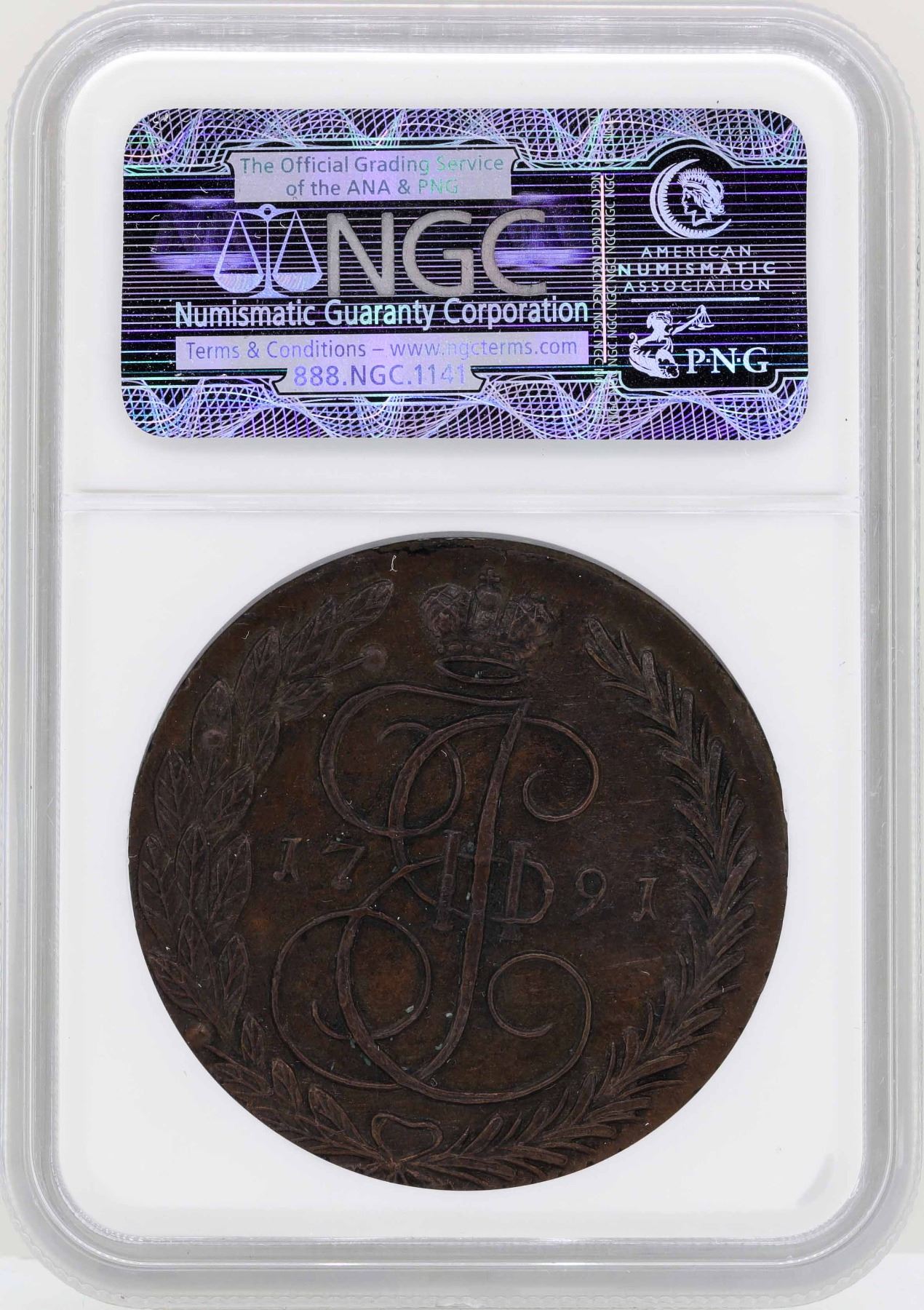 One 1791EM Russia 5 Kopeks Copper Coin NGC MS62BN.