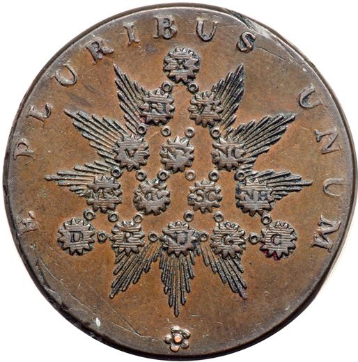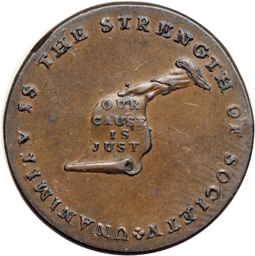 (1792-1794) Kentucky Halfpence Token with Blundered Edge Letters Breen-1157 AU50. Choice glossy medium brown and chocolate. Flawless except for some tiny planchet fissures at the top and bottom of the reverse (the pyramid side). Excellent eye appeal. The edge letters are blundered and less than half of them made it onto the planchet. The edge should read PAYABLE IN LANCASTER LONDON OR BRISTOL but only BLE IN LANCA and a stray L made it to this one. Breen mentions that this variety rarely comes with edge blunders from slippage. Well, this is a good example. Weight 155.7 grains.