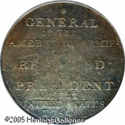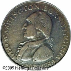 <B>(1792) 1C Washington Born Virginia Cent, Inscribed Reverse VF20 PCGS.</B></I> Breen-1239, Baker-60. This is the "second die" as listed by Walter Breen, and it is the more plentiful of two varieties. An easy attribution point is the relationship between TE of UNITED and the 1 of 1789. The "first die" has the 1 of the date below the space between TE, favoring the E. The "second die" has the digit 1 below the right base of the T. The are several other differences between these dies. This issue is described as "undated," and it is generally believed that it was issued circa 1792. The inscription on the reverse lists three different years, 1775, 1783, and 1789, representing important years in the life of Washington.<BR> Walter Breen attributed the coinage of these pieces to Birmingham, England, and he described them as medals that were not fancy enough to suit the desires of medal collectors in that country. Therefore, the Washington Born Virginia pieces were shipped to America, where they circulated, most likely as one cent coins, due to there size relationship to the federal cents.<BR> This is a lovely example with smooth dark brown surfaces and lighter tan at the periphery. The surfaces are not pristine, but are far nicer than normally encountered, with only miniscule abrasions. The only distracting mark is a short diagonal scratch at the upper reverse. from the border at 12:30 to the E of GENERAL. While not a major rarity in the colonial series, this is an extremely important offering of a scarce issue that is seldom found nice. Lot:5055