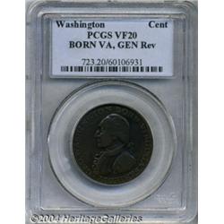 1792[1C] Washington Born Virginia Cent, Inscribed Reverse VF20 PCGS.