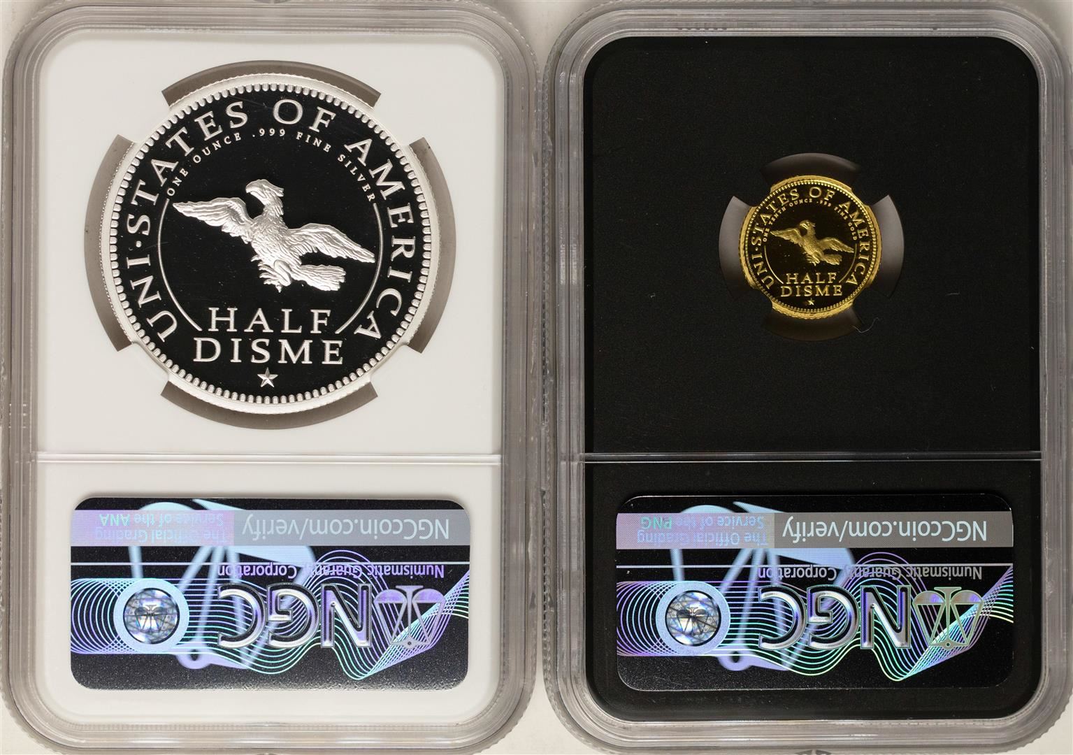One 1792-2017 Half Disme 1/10 oz. Gold & 1oz. Silver Medals NGC PF70 W/ Moy Signature Set. NGC Certified.