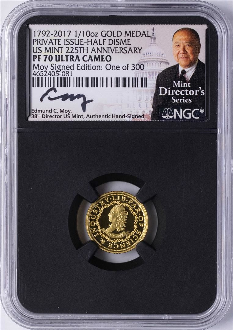 1792-2017 Half Disme 1/10 oz. Gold Medal NGC PF70 W/Edmund C. Moy Signature