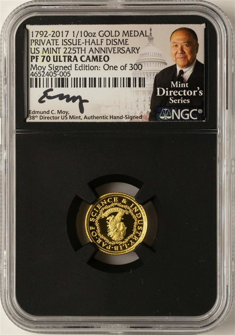 1792-2017 Half Disme 1/10 oz. Gold Medal NGC PF70 W/Edmund C. Moy Signature