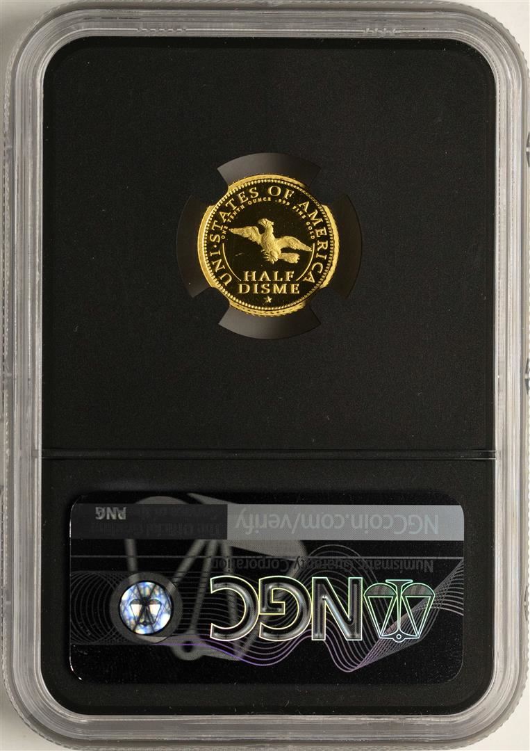 One 1792-2017 Half Disme 1/10 oz. Gold Medal NGC PF70 W/Edmund C. Moy Signature. NGC Certified.
