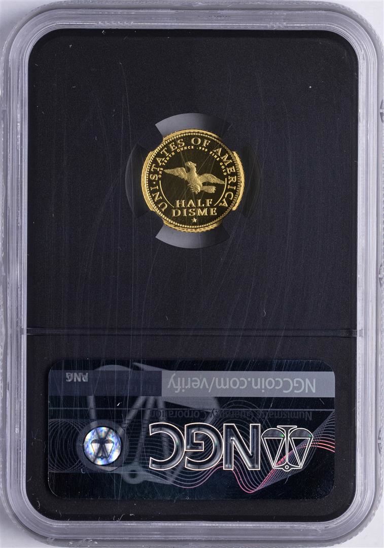 One 1792-2017 Half Disme 1/10 oz. Gold Medal NGC PF70 W/Edmund C. Moy Signature. NGC Certified.
