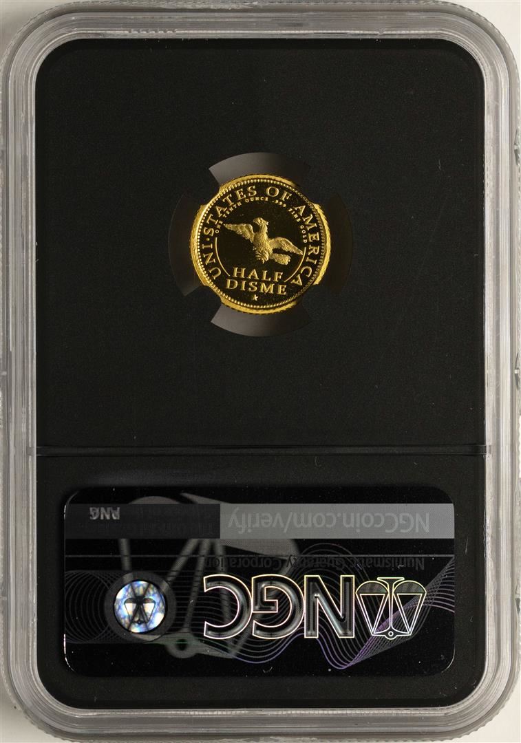 One 1792-2017 Half Disme 1/10 oz. Gold Medal NGC PF70 W/Edmund C. Moy Signature. NGC Certified.