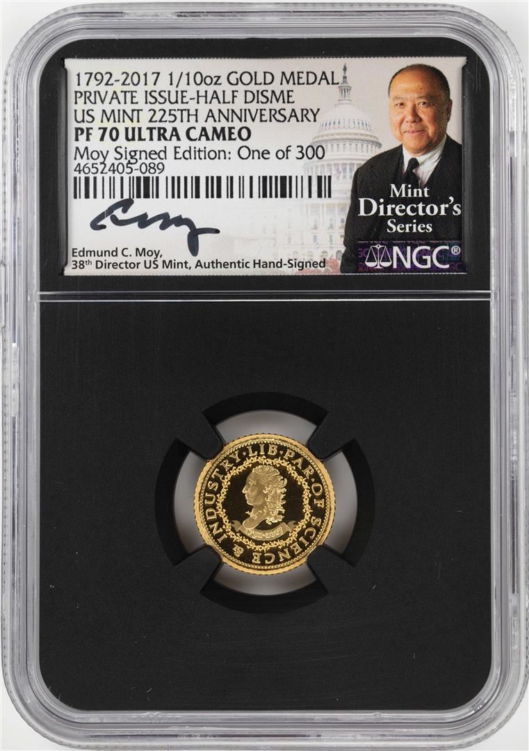 1792-2017 Half Disme 1/10 oz. Gold Medal NGC PF70 W/Edmund C. Moy Signature