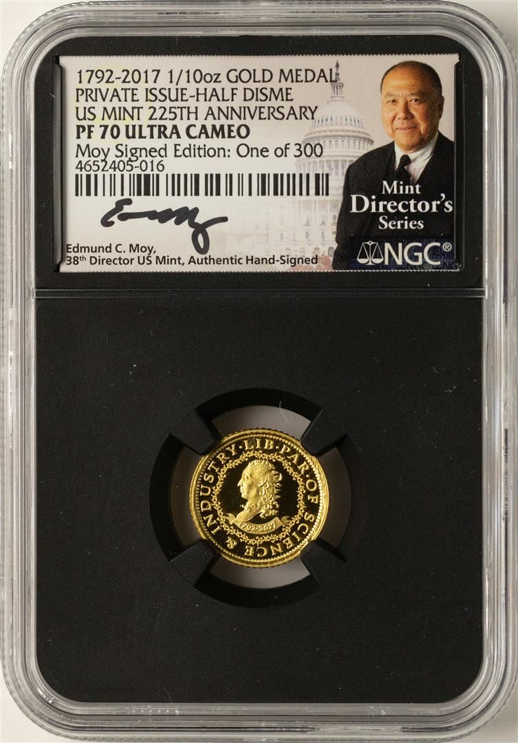 1792-2017 Half Disme 1/10 oz. Gold Medal NGC PF70 W/Edmund C. Moy Signature
