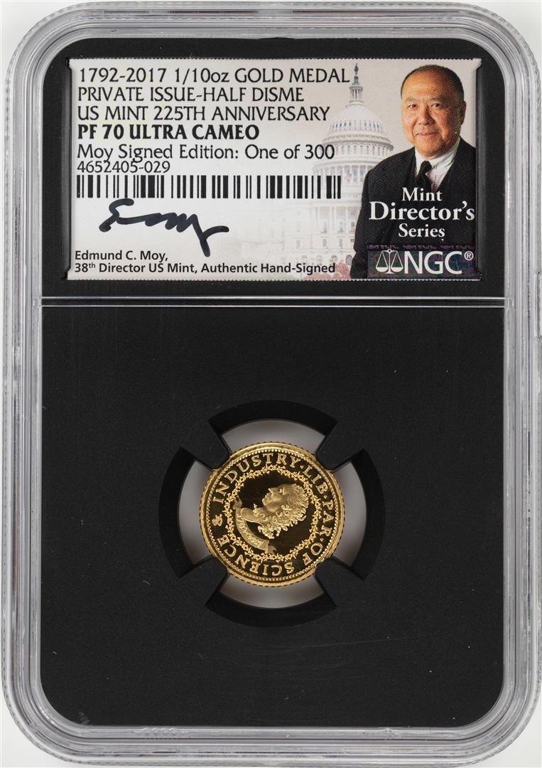 1792-2017 Half Disme 1/10 oz. Gold Medal NGC PF70 W/Edmund C. Moy Signature