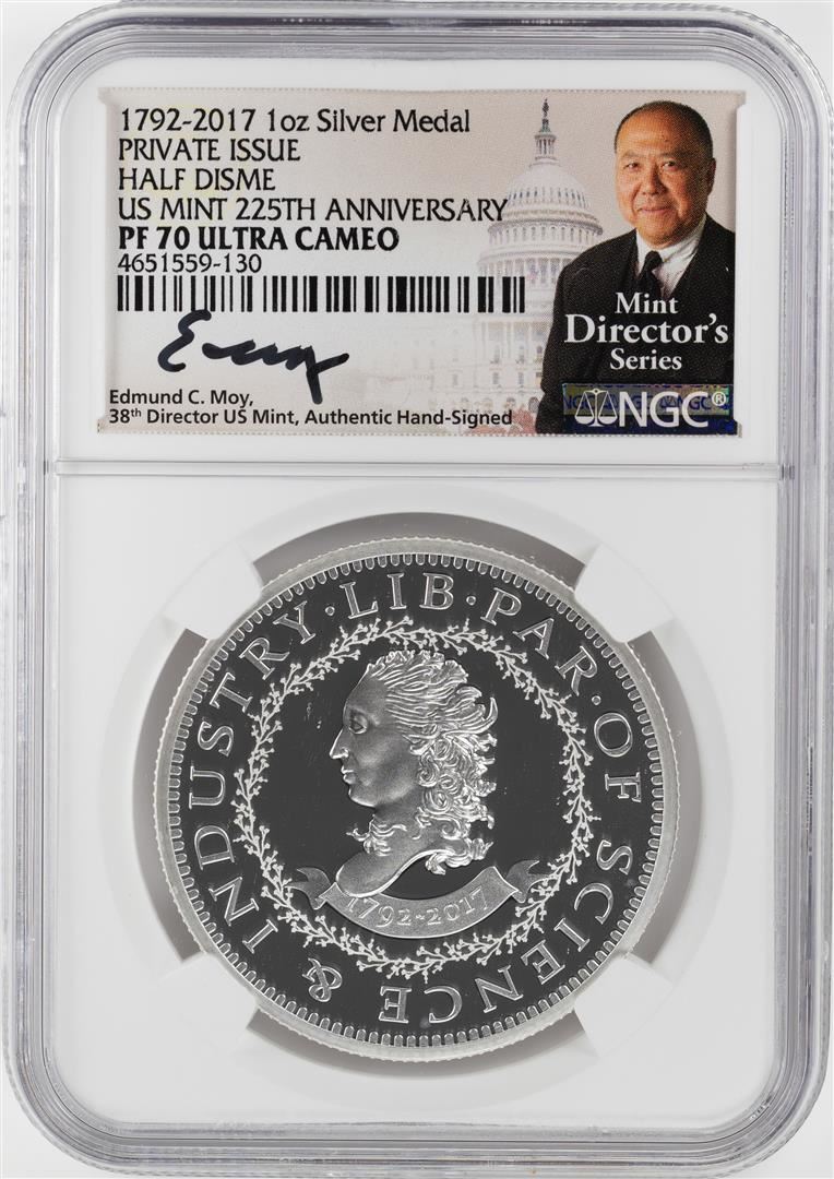 1792-2017 Half Disme 1 oz. Silver Medal NGC PF70 W/Edmund C. Moy Signature
