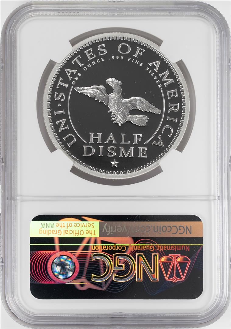 One 1792-2017 Half Disme 1 oz. Silver Medal NGC PF70 W/Edmund C. Moy Signature. NGC Certified.