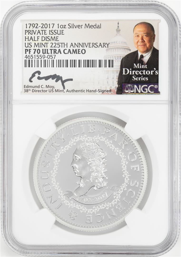 1792-2017 Half Disme 1 oz. Silver Medal NGC PF70 W/Edmund C. Moy Signature