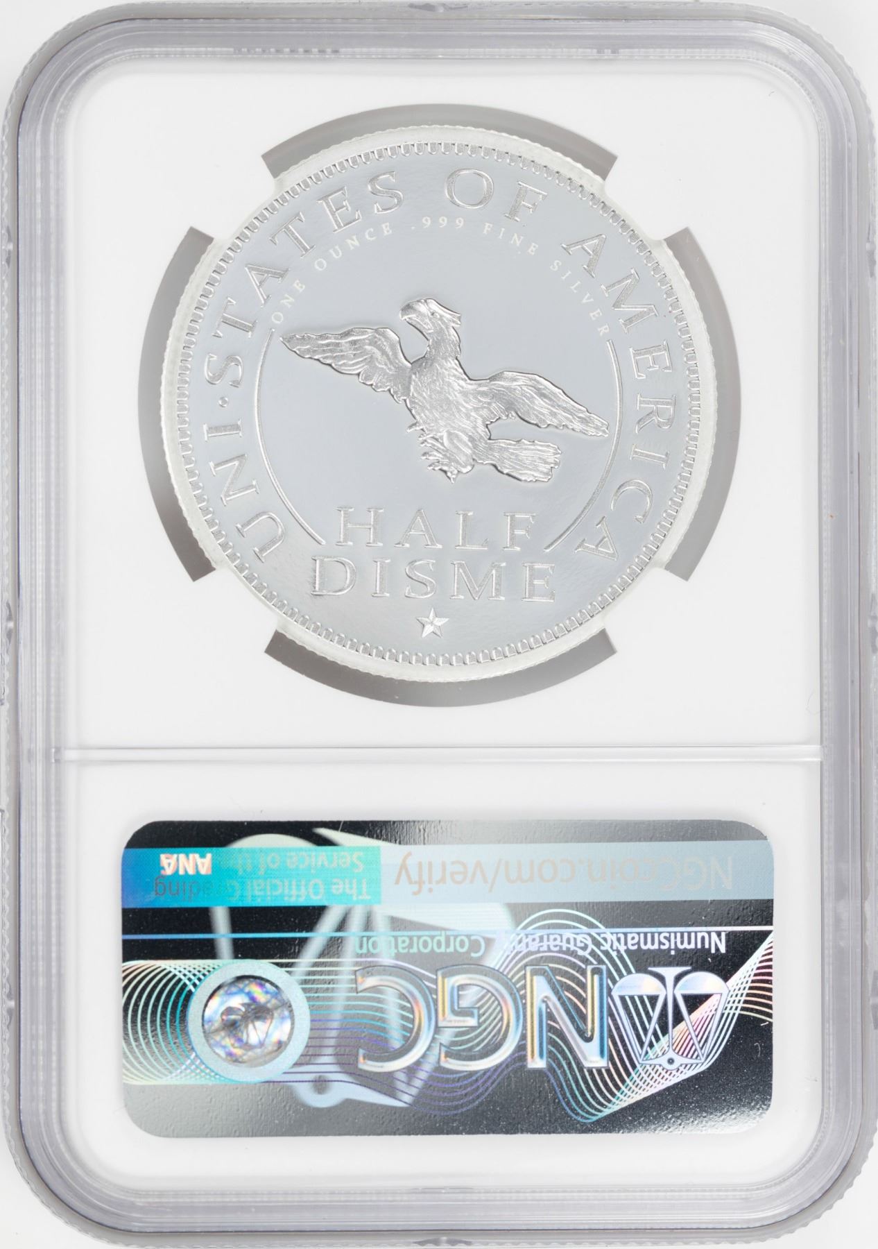 One 1792-2017 Half Disme 1 oz. Silver Medal NGC PF70 W/Edmund C. Moy Signature.