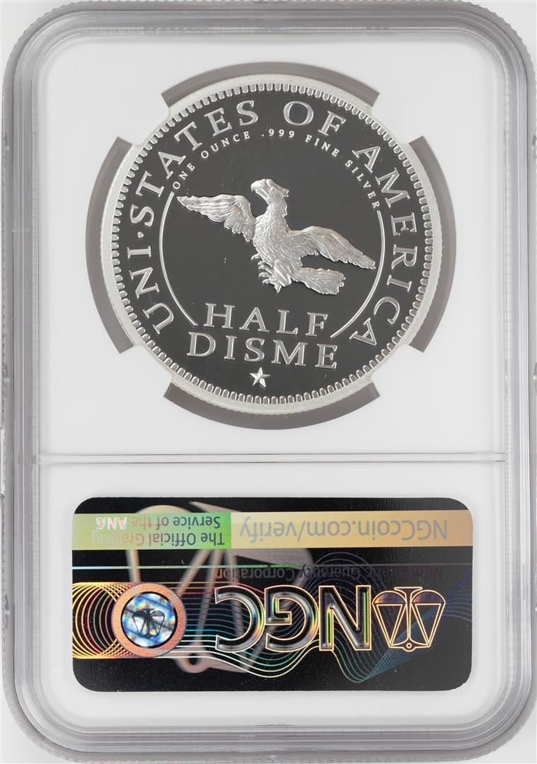 One 1792-2017 Half Disme 1 oz. Silver Medal NGC PF70 W/Edmund C. Moy Signature. NGC Certified.