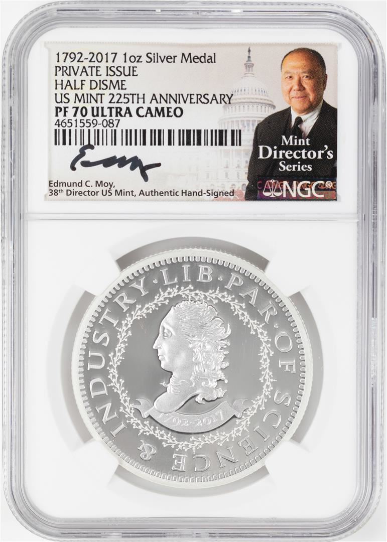 1792-2017 Half Disme 1 oz. Silver Medal NGC PF70 W/Edmund C. Moy Signature