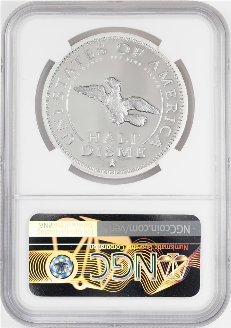 One 1792-2017 Half Disme 1 oz. Silver Medal NGC PF70 W/Edmund C. Moy Signature. NGC Certified.