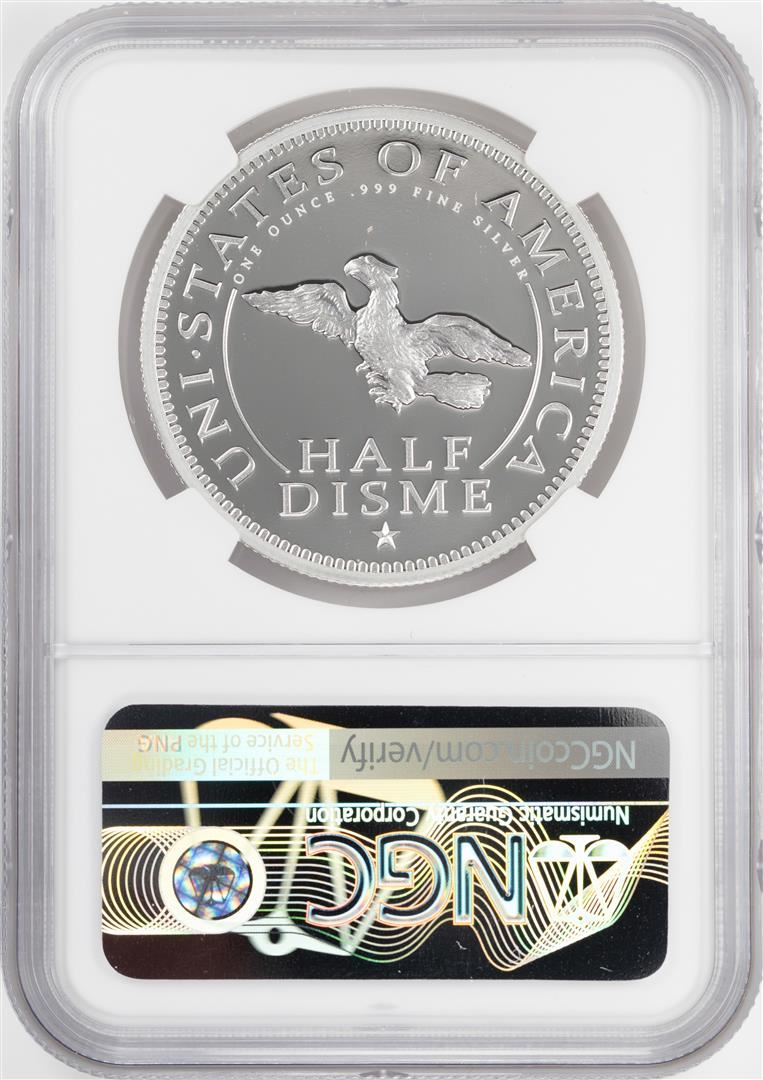One 1792-2017 Half Disme 1 oz. Silver Medal NGC PF70 W/Edmund C. Moy Signature. NGC Certified.