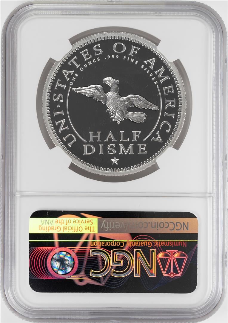 One 1792-2017 Half Disme 1 oz. Silver Medal NGC PF70 W/Edmund C. Moy Signature. NGC Certified.