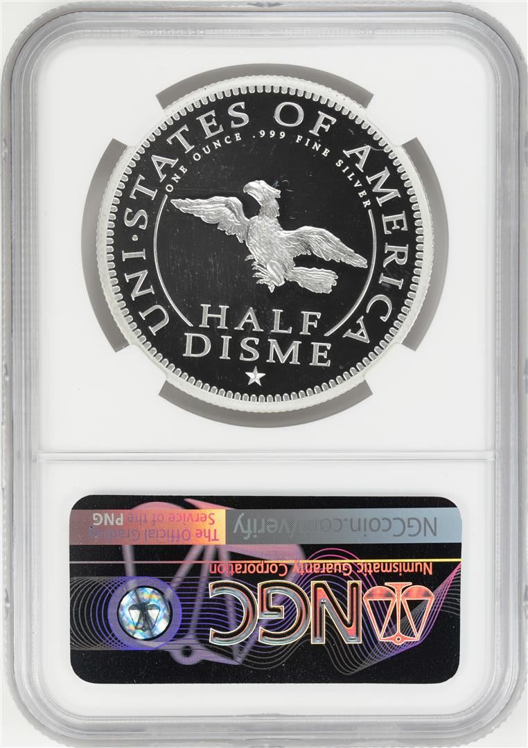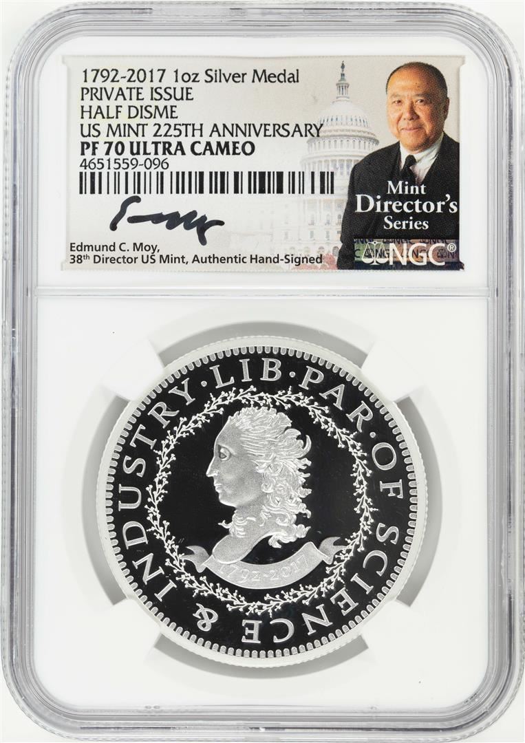 One 1792-2017 Half Disme 1 oz. Silver Medal NGC PF70 W/Edmund C. Moy Signature. NGC Certified.