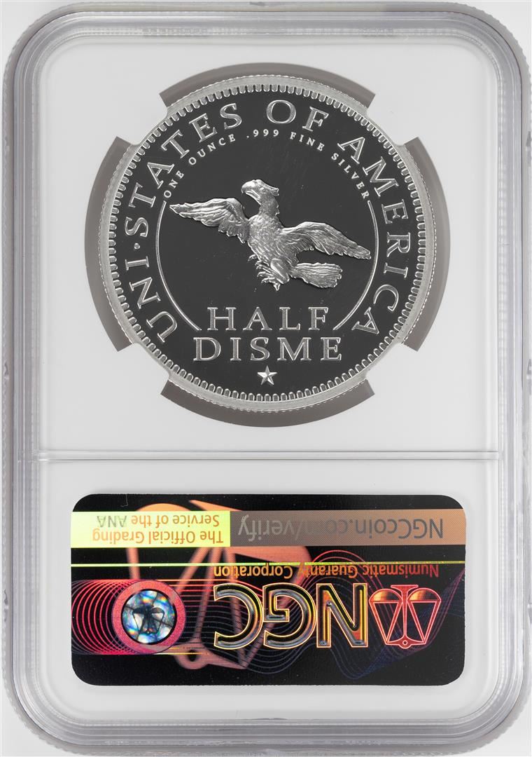One 1792-2017 Half Disme 1 oz. Silver Medal NGC PF70 W/Edmund C. Moy Signature. NGC Certified.