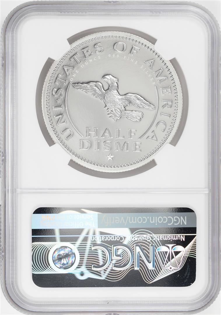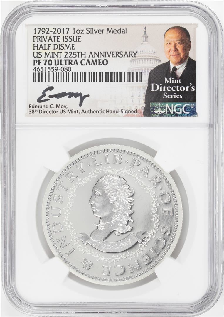 One 1792-2017 Half Disme 1 oz. Silver Medal NGC PF70 W/Edmund C. Moy Signature. NGC Certified.