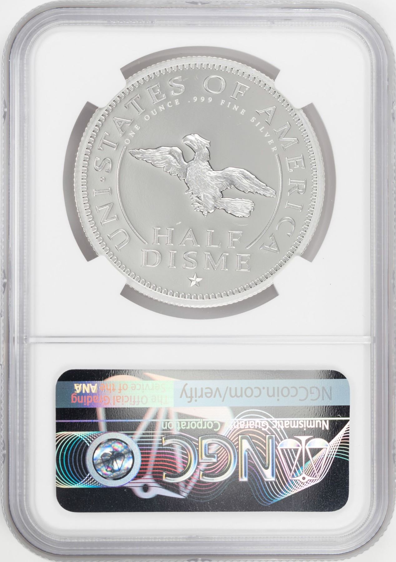 One 1792-2017 Half Disme 1 oz. Silver Medal NGC PF70 W/Edmund C. Moy Signature.