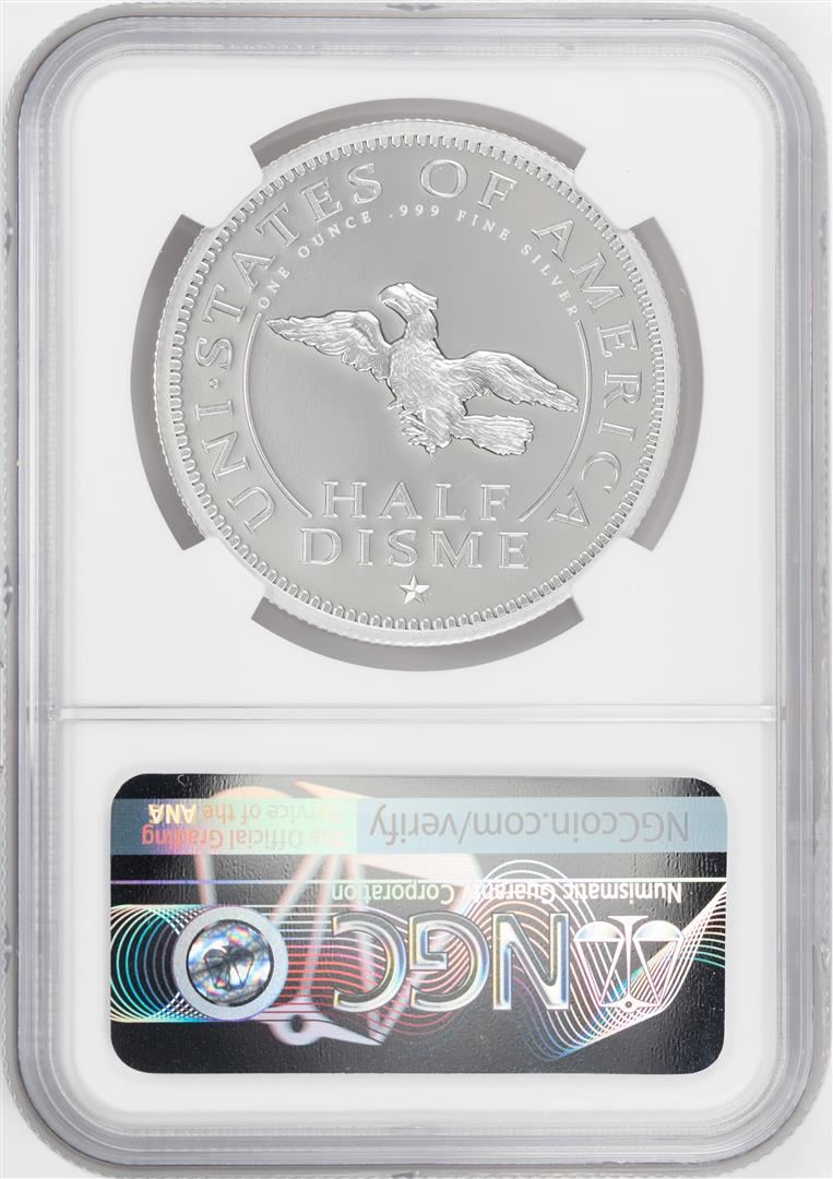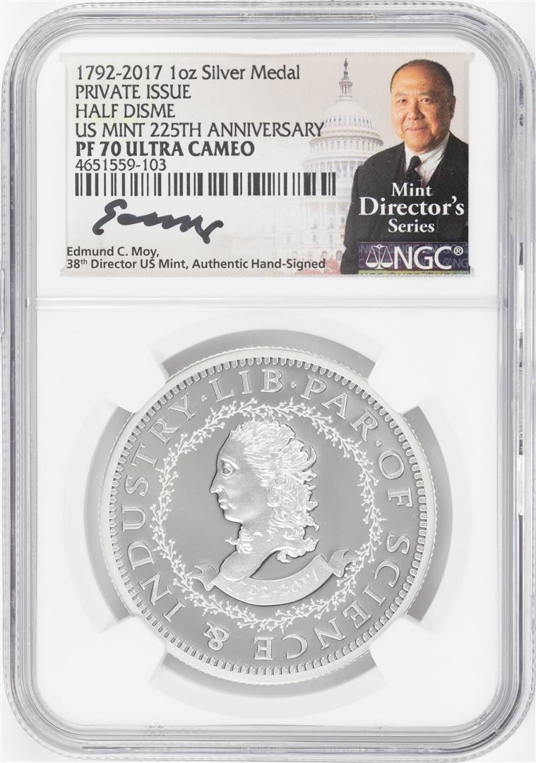 One 1792-2017 Half Disme 1 oz. Silver Medal NGC PF70 W/Edmund C. Moy Signature. NGC Certified.