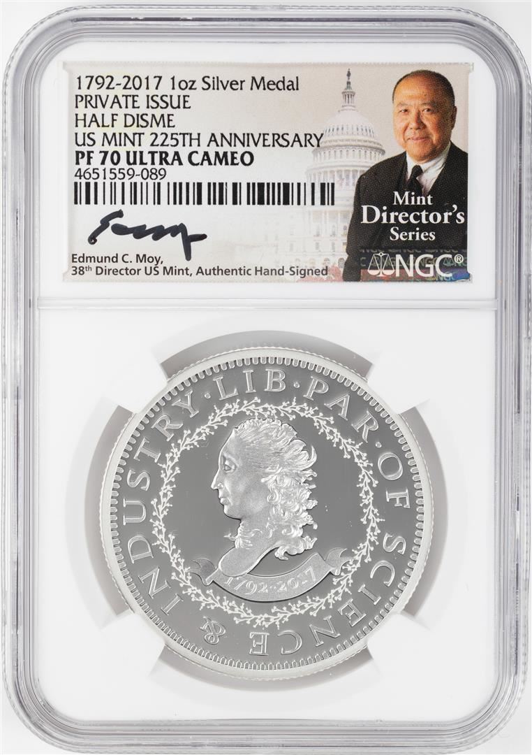 1792-2017 Half Disme 1 oz. Silver Medal NGC PF70 W/Edmund C. Moy Signature