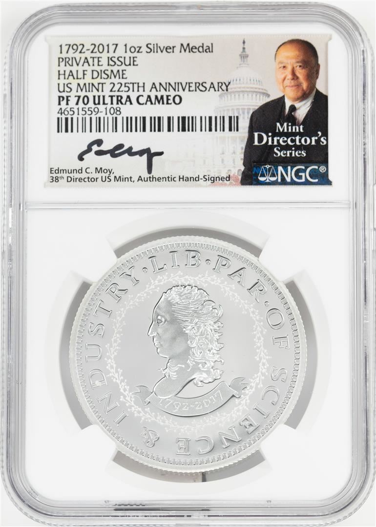 1792-2017 Half Disme 1 oz. Silver Medal NGC PF70 W/Edmund C. Moy Signature