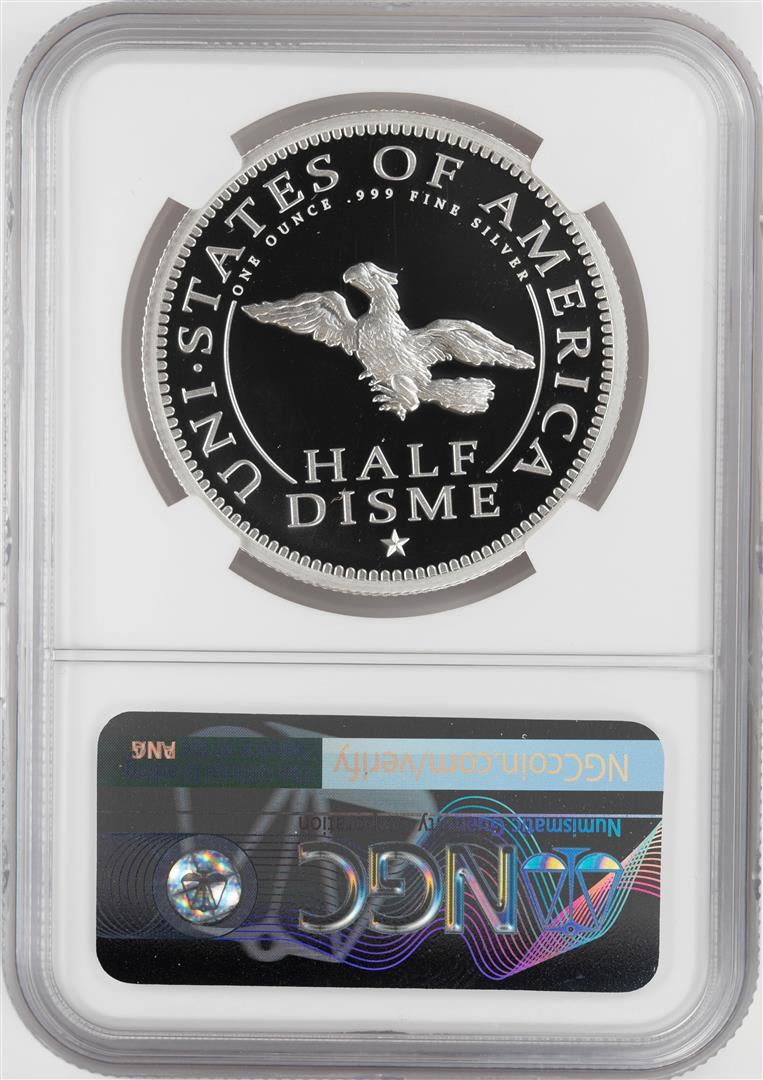 One 1792-2017 Half Disme 1 oz. Silver Medal NGC PF70 W/Edmund C. Moy Signature. NGC Certified.