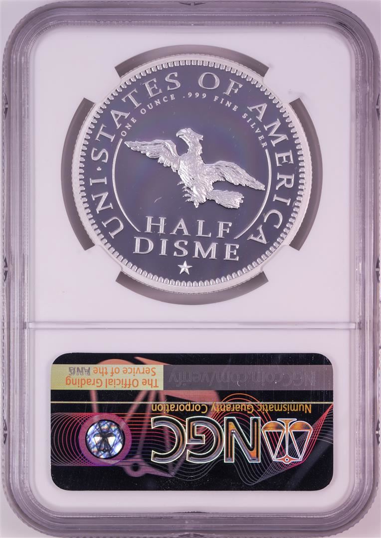 One 1792-2017 Half Disme 1 oz. Silver Medal NGC PF70 W/Edmund C. Moy Signature. NGC Certified.