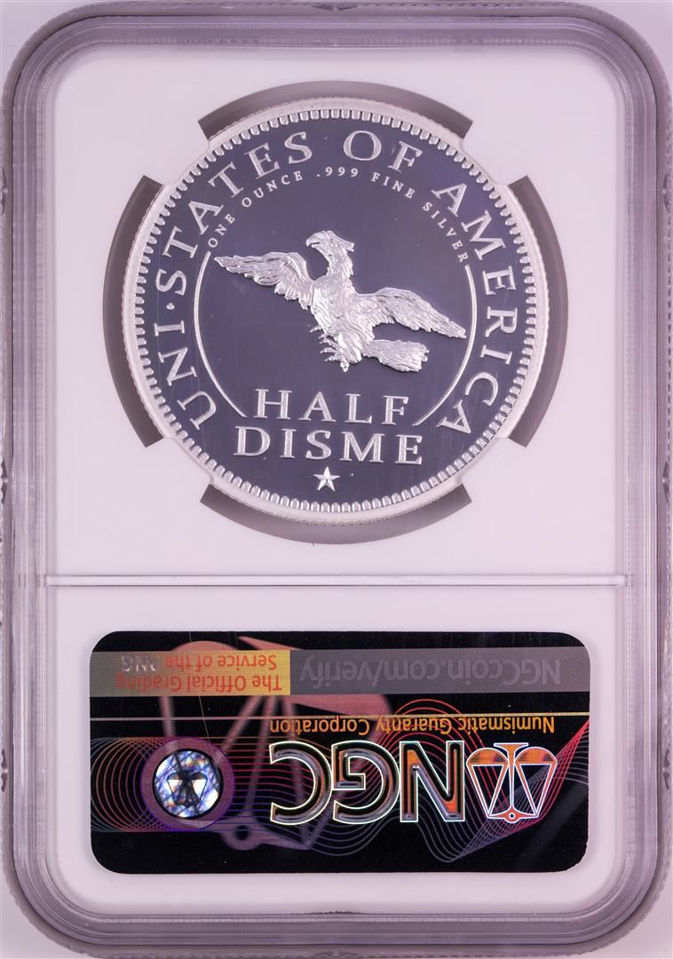 One 1792-2017 Half Disme 1 oz. Silver Medal NGC PF70 W/Edmund C. Moy Signature. NGC Certified.