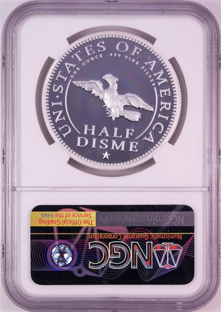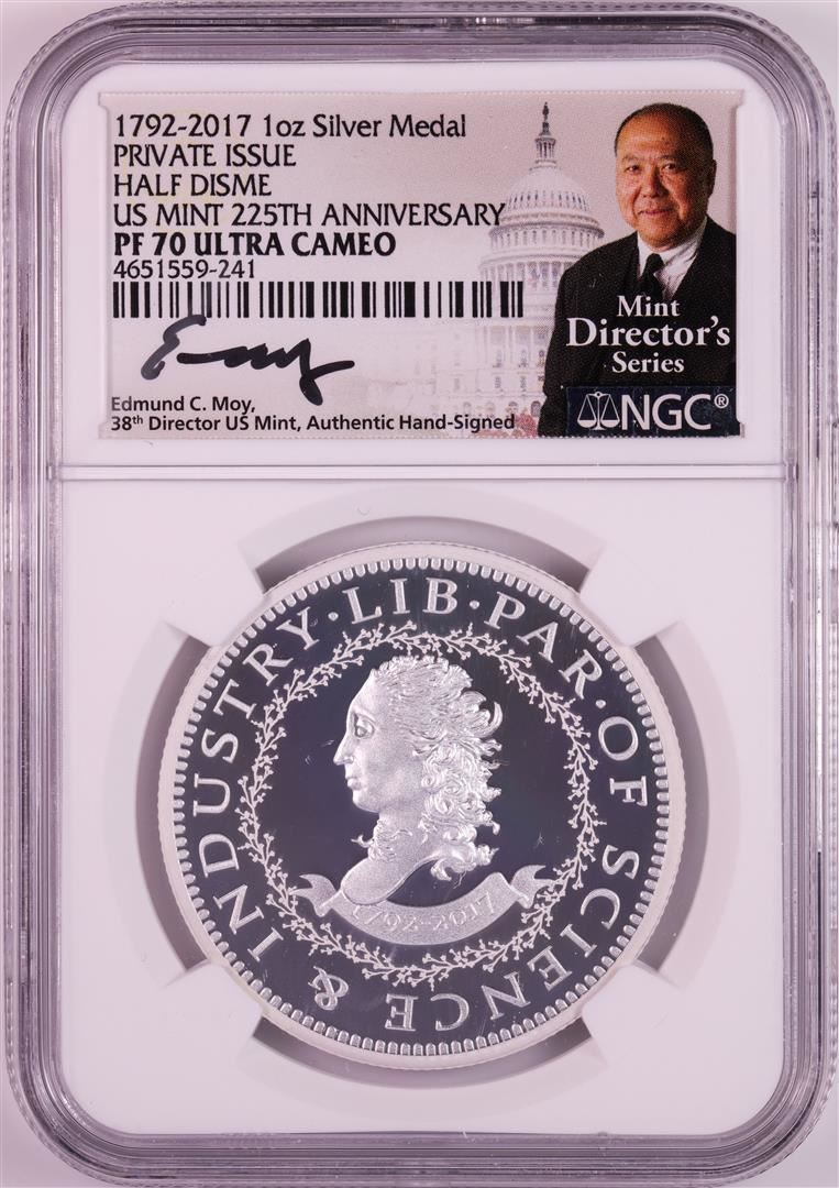 One 1792-2017 Half Disme 1 oz. Silver Medal NGC PF70 W/Edmund C. Moy Signature. NGC Certified.
