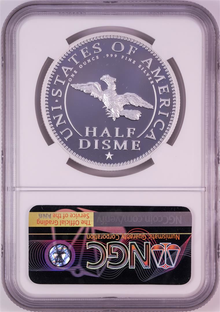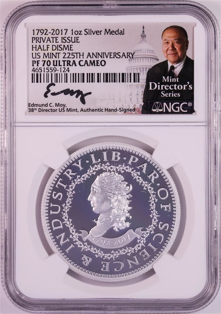 One 1792-2017 Half Disme 1 oz. Silver Medal NGC PF70 W/Edmund C. Moy Signature. NGC Certified.