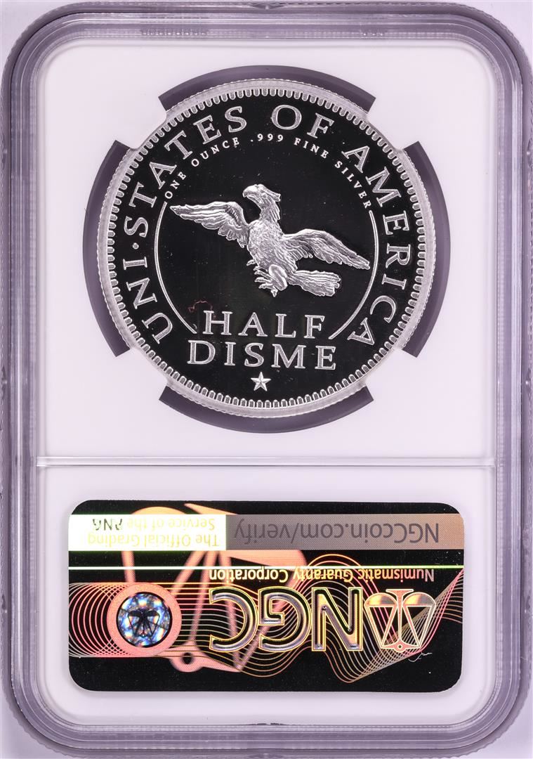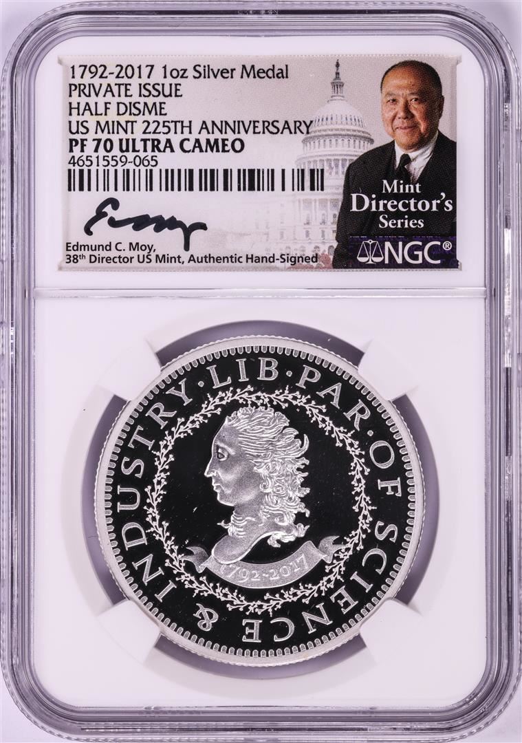One 1792-2017 Half Disme 1 oz. Silver Medal NGC PF70 W/Edmund C. Moy Signature. NGC Certified.
