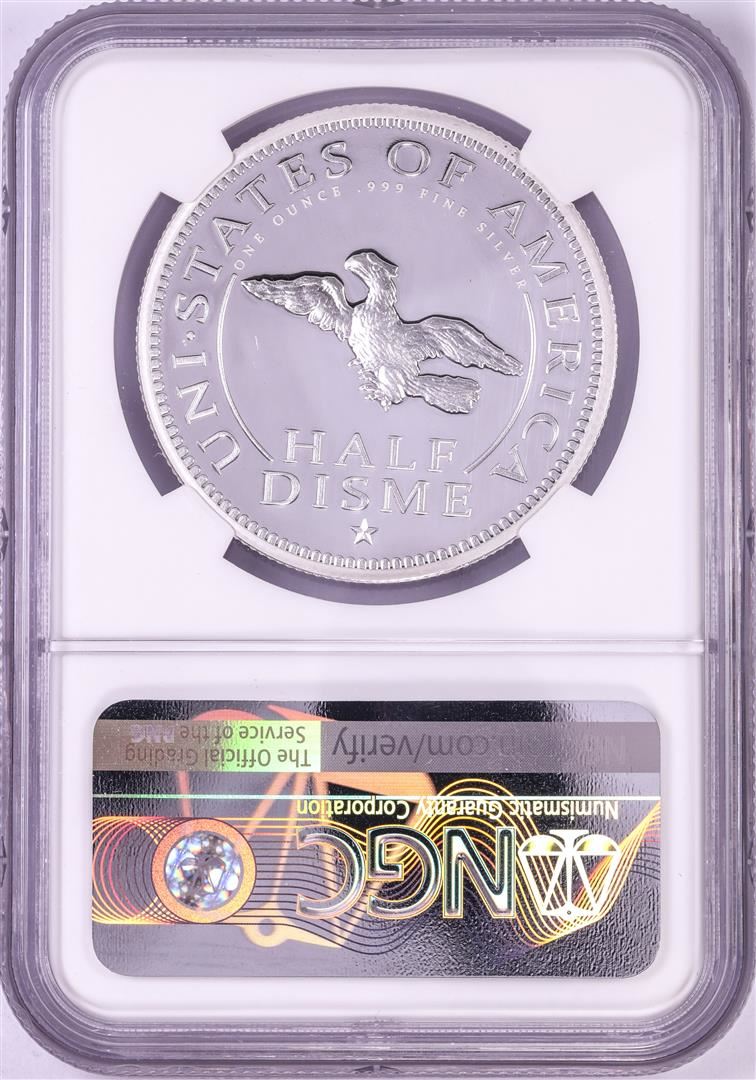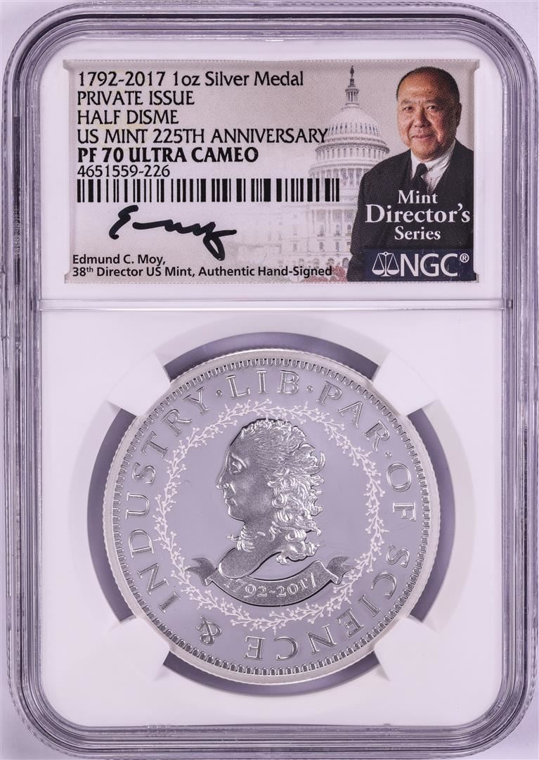 One 1792-2017 Half Disme 1 oz. Silver Medal NGC PF70 W/Edmund C. Moy Signature. NGC Certified.