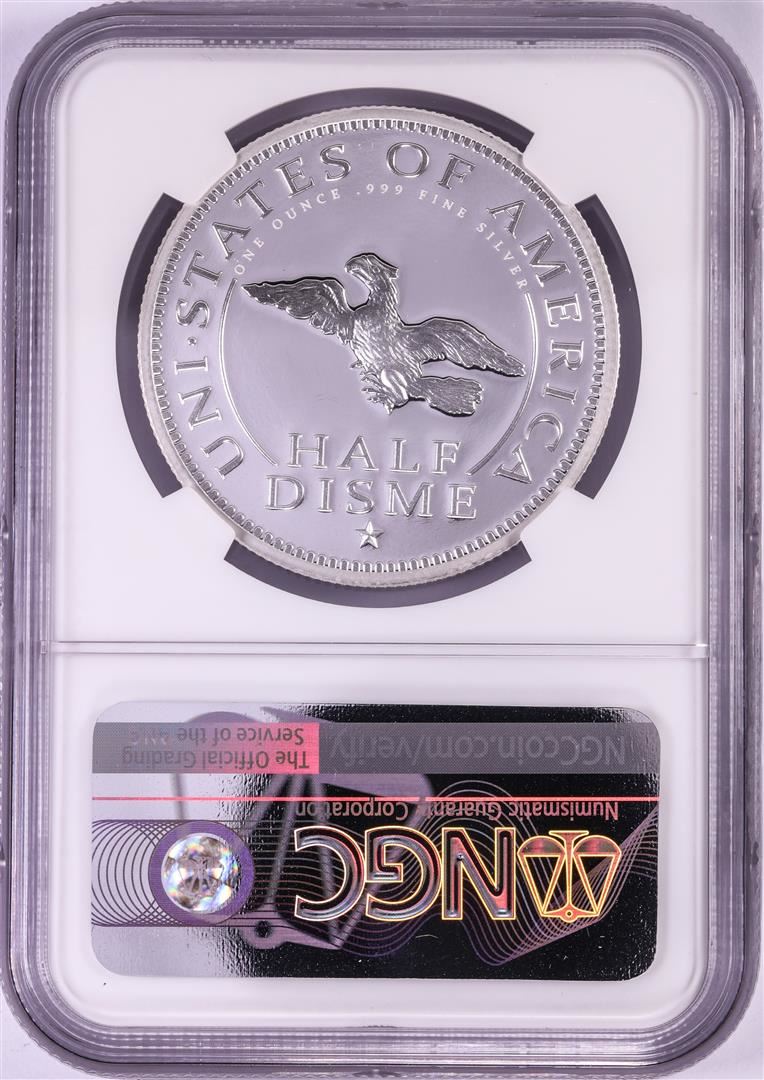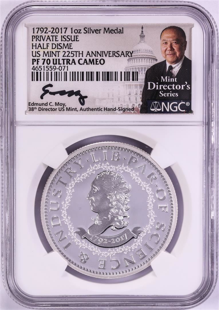 One 1792-2017 Half Disme 1 oz. Silver Medal NGC PF70 W/Edmund C. Moy Signature. NGC Certified.