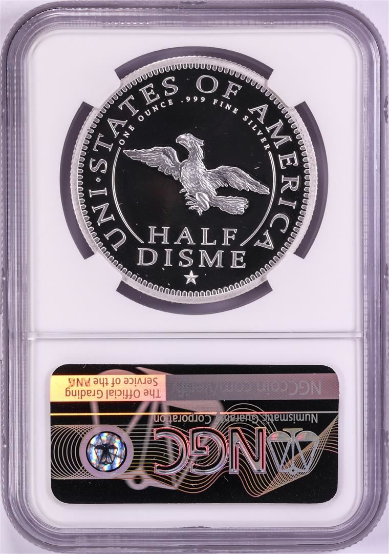 One 1792-2017 Half Disme 1 oz. Silver Medal NGC PF70 W/Edmund C. Moy Signature. NGC Certified.