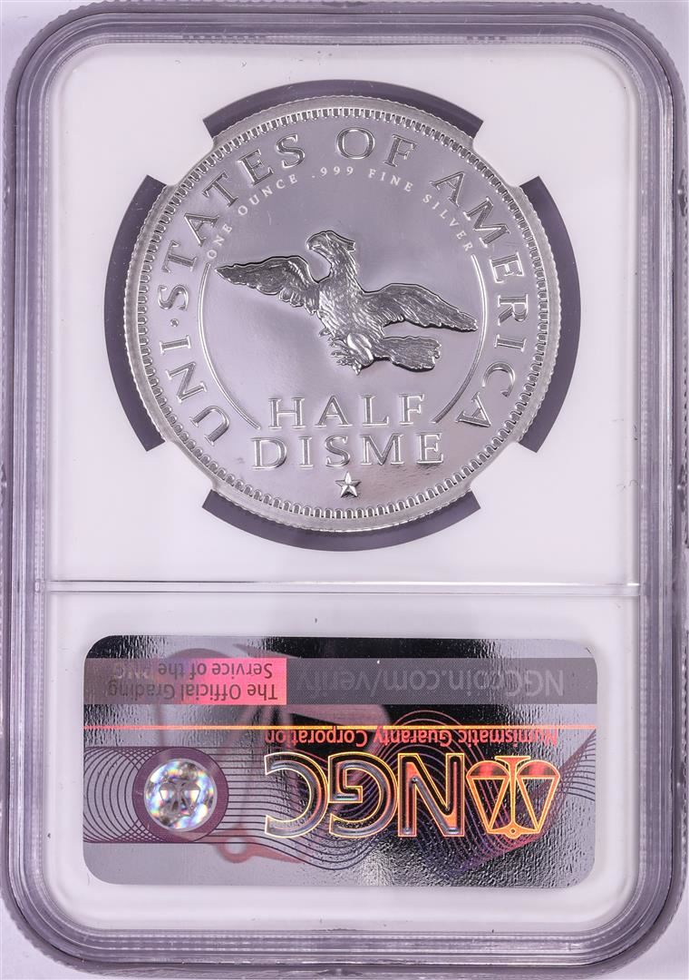 One 1792-2017 Half Disme 1 oz. Silver Medal NGC PF70 W/Edmund C. Moy Signature. NGC Certified.