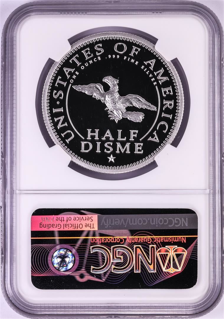 One 1792-2017 Half Disme 1 oz. Silver Medal NGC PF70 W/Edmund C. Moy Signature. NGC Certified.