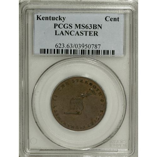 (1792-94) TOKEN Kentucky Token, LANCASTER Edge MS63 Br