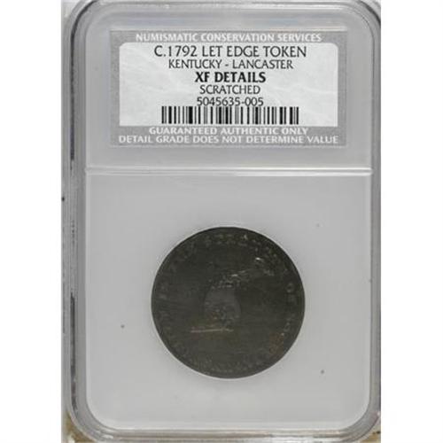 <B>(1792-94) TOKEN Kentucky Token, LANCASTER Edge--Scratched--NCS. XF Details. </B></I> NGC Census: (0/0). PCGS Population (4/120). (#623)<BR><BR><b>Shipping:</b> Coins & Currency (<a target="_blank" href="http://www.heritageauctions.com/common/shipping.php">view shipping information</a>)