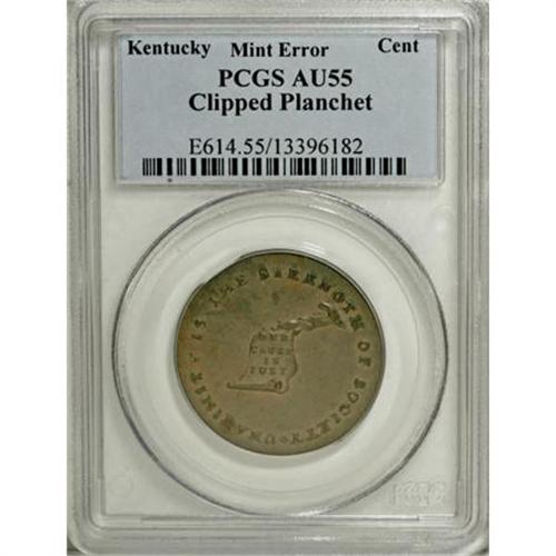 <B>(1792-94) TOKEN Kentucky Token, Plain Edge--Clipped Planchet--AU55 PCGS.</B></I> PCGS Population (49/100). NGC Census: (0/0). (#614)<BR><BR><b>Shipping:</b> Coins & Currency (<a target="_blank" href="http://www.heritageauctions.com/common/shipping.php">view shipping information</a>)