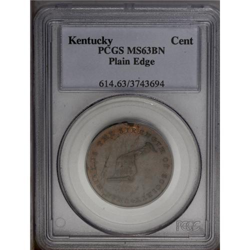(1792-94) TOKEN Kentucky Token, Plain Edge MS63 Brown (1792-94)[TOKEN] Kentucky Token, Plain Edge MS